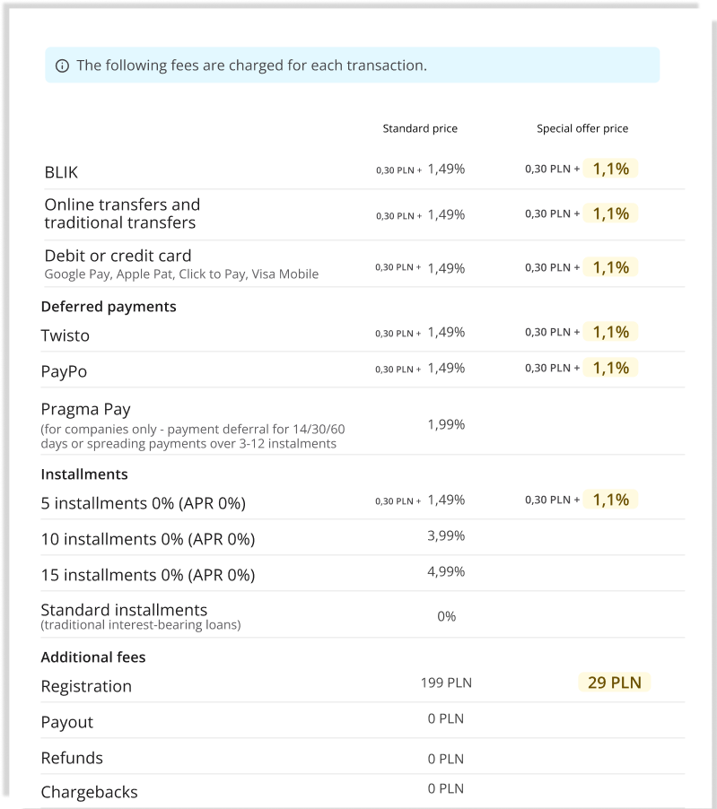 Once your first transaction is completed, we begin verifying your company. At this stage, you can accept payments up to 2,500 zł, including online transfers and BLIK.